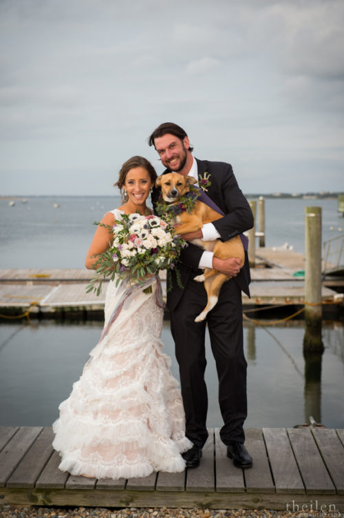 My favorite photo of all: Katie Kaizer and Evan Schwanfelder with flowers and their dog Ziggy.