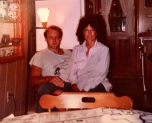 Charley and me in our cottage. Yes, I have naturally curly hair! I told you hairstyles change a lot!