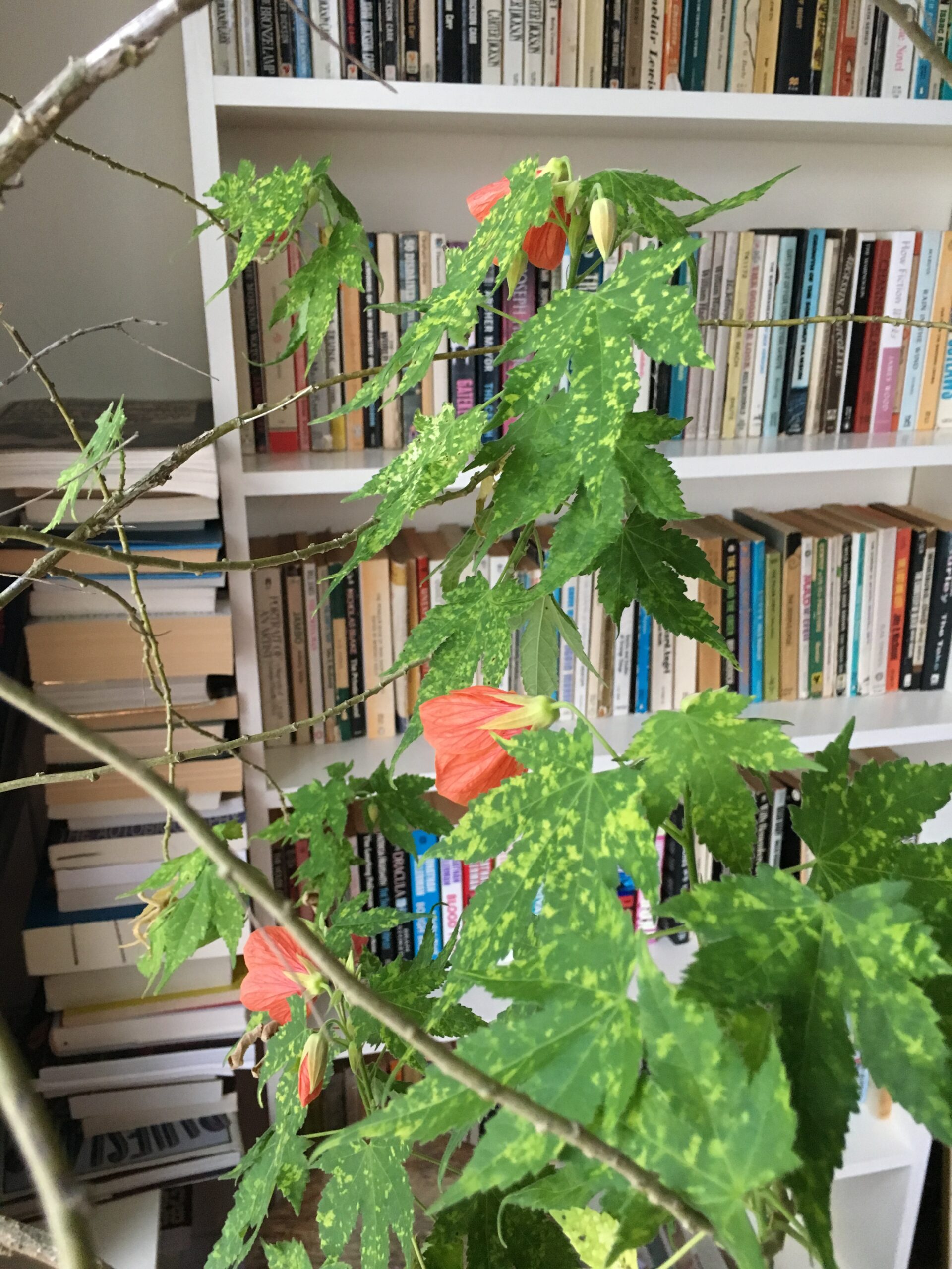 My maple abutilon is flowering and its leaves feel like velvet. But It’s crooked. I’m working on that.